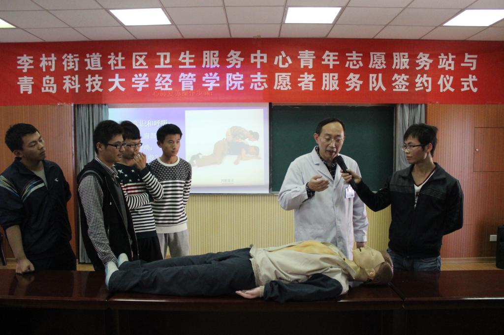 暖心愿志愿者服务队与李村街道社区卫生服务中心青年志愿服务站签约仪式在经管楼505室举行。李沧区卫计局团委、李村街道社区卫生服务中心青年志愿服务站、李沧区虎山路街道团工委、市第三人民医院急诊科与成人直播平台