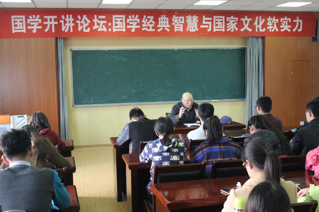 邀请著名人文学家、古汉语学者、学院特聘教授汪正楚于学院505室为学生作题为“国学经典智慧与国家文化软实力”的报告。