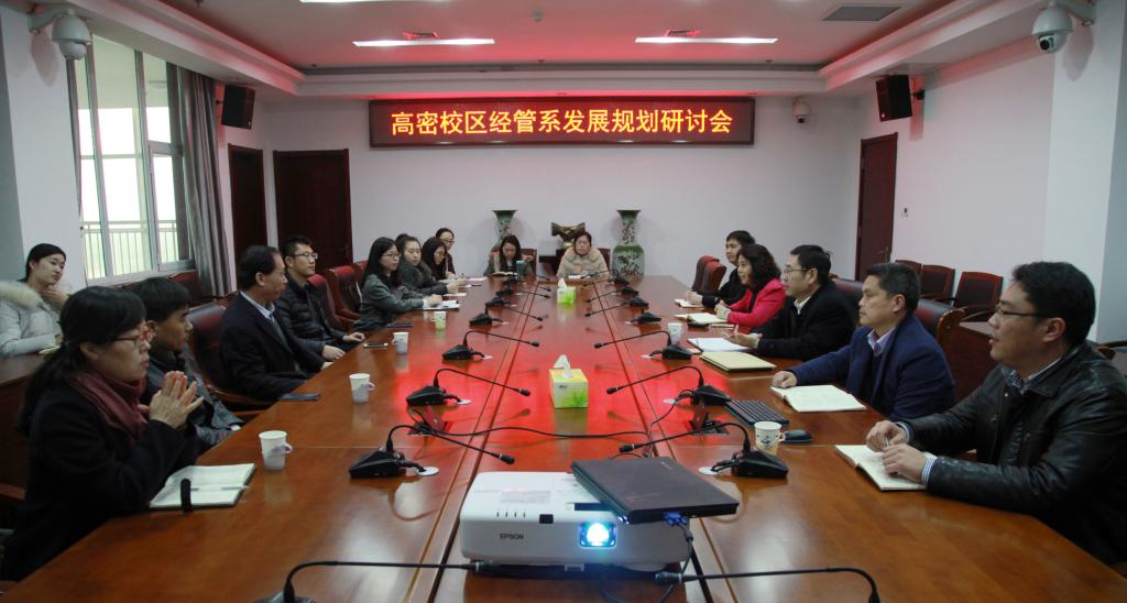 负责人在校区图书馆楼会议室进行了座谈交流。梁树清从高密校区发展历程、发展现状和发展愿景三大方面详细介绍了高密校区的建设发展情况。姜铭汇报了经管系的发展现状及未来工作思路。与会人员就应用型人才培养、就业指导工作推进、青年教师教学培训、高密发展研究院的发展等问题进行了交流。