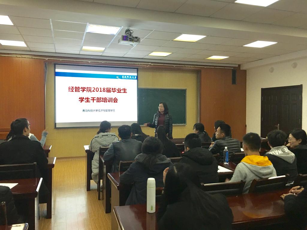 在419会议室召开2018届毕业生学生干部培训会。活动以学习宣传贯彻党的十九大精神,深刻领会“创新驱动发展”精髓,落实毕业生就业择业技能教育为主题展开。学院分团委书记兼2014级辅导员李雯雯、全体2018届毕业生党员以及学生干部参加了此次会议。