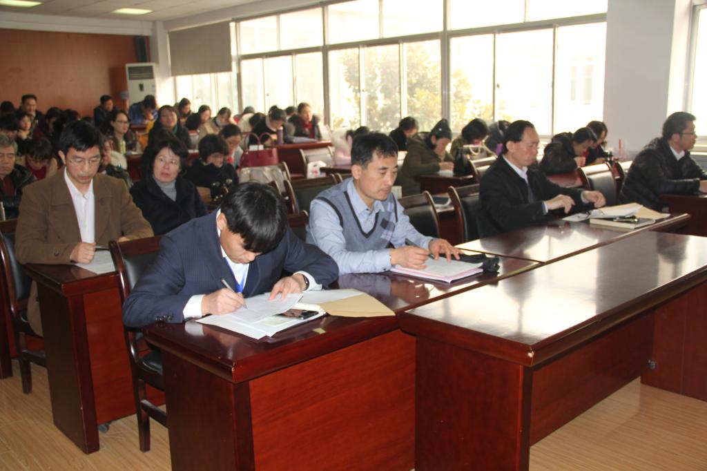 楼在学院419室召开2017年度述德述职述廉大会。学校离退休处党总支书记杨中华、学校办公室综合科主任王晓娜代表学校,学院党政领导及全体教师参加了会议。会议由党总支书记聂法良主持。