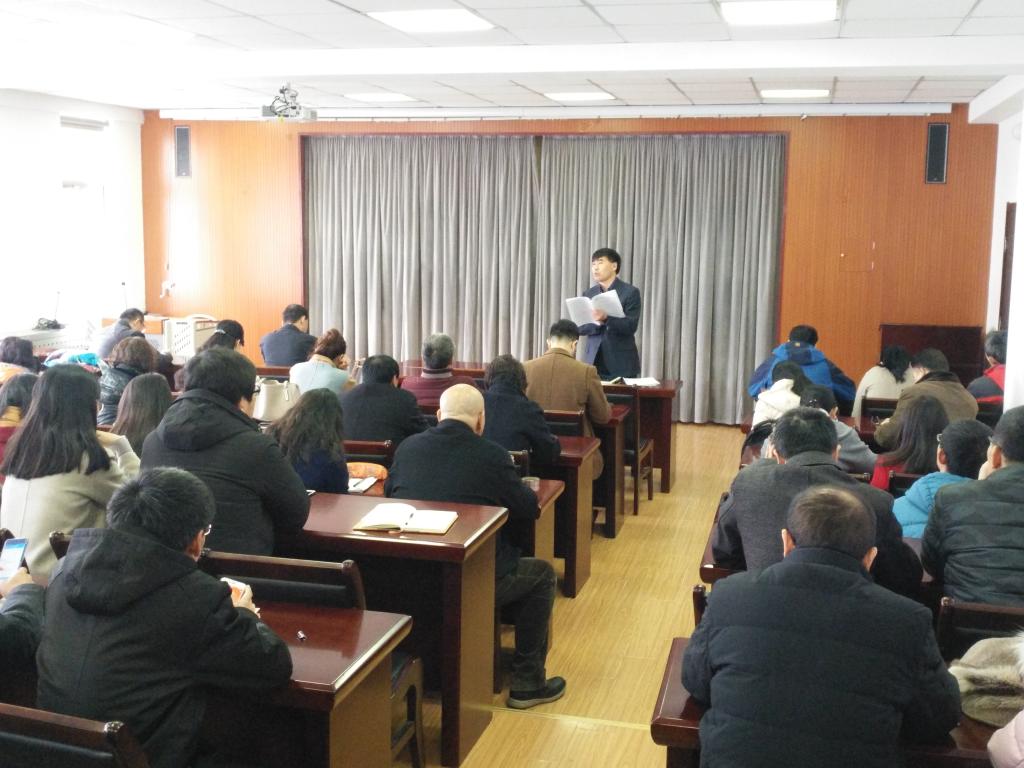 在南区2号楼410室召开学院全体教师大会,传达学习贯彻学校年度工作研讨会会议精神,全体教师参加了会议,会议由学院党总支书记聂法良主持。