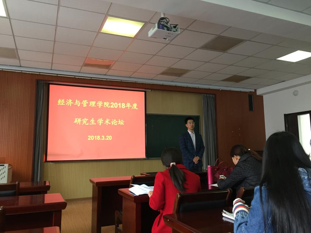 本学期第一次研究生学术论坛于经管楼419室顺利开展,论坛由副院长杨友才主持,学院部分教师代表和学术型研究生参加了此次论坛。