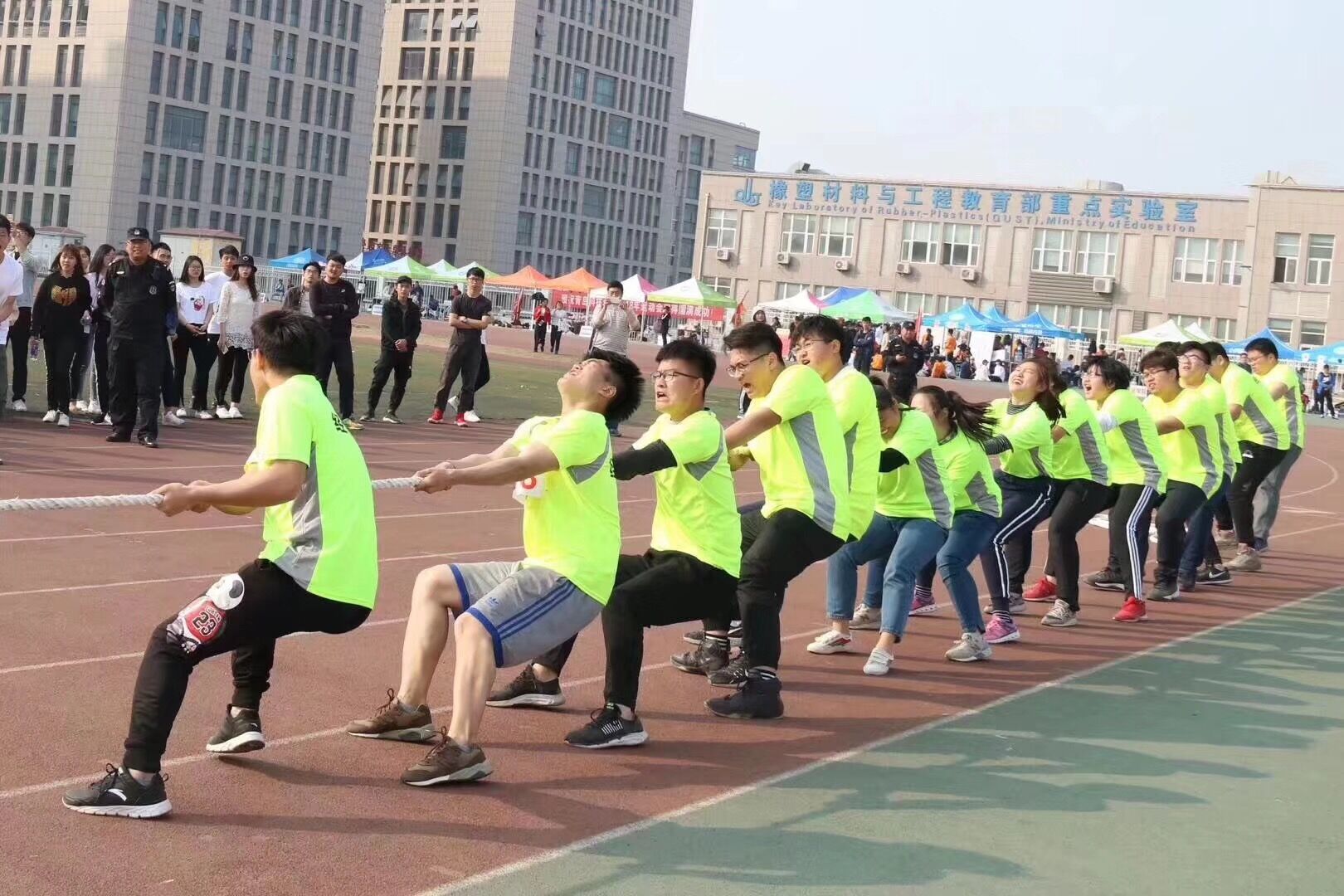 代表方队迈着整齐的步伐,踏着激昂的运动员进行曲,英姿飒爽、气宇轩昂地走向主席台,活力四射的啦啦操展现出经管学子朝气蓬勃、追求卓越的精神风貌。经管学代表队在广播体操汇演中,动作娴熟到位,张弛有度,充盈着刚健之美,洋溢着青春气息。经管健儿秉承“更快、更高、更强”的奥林匹克精神,牢记“团结、奋进、文明、育人”的运动会宗旨,用实力证明自己,用汗水为学院争光,赢得观众击鼓助威。在拔河比赛中,运动员们咬紧牙关,齐心协力,用拼搏精神掀起了运动会的最后一波热潮,场下欢呼声、呐喊声经久不绝。