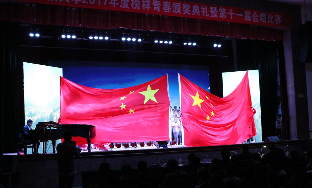 2017年度榜样青春颁奖典礼暨第十一届“五四”合唱比赛决赛于四方校区西礼堂成功举行。校领导张元利、韦殿华、陈克正、吕万翔,学校机关部门、各学院相关负责人和千余名青年学生齐聚一堂,感受了科大青年的青春风采和蓬勃朝气。
