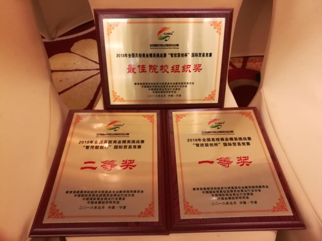 国际经济与贸易专业学生组成的2支参赛队伍,分别获得一等奖和二等奖,学校获评最佳院校组织奖。