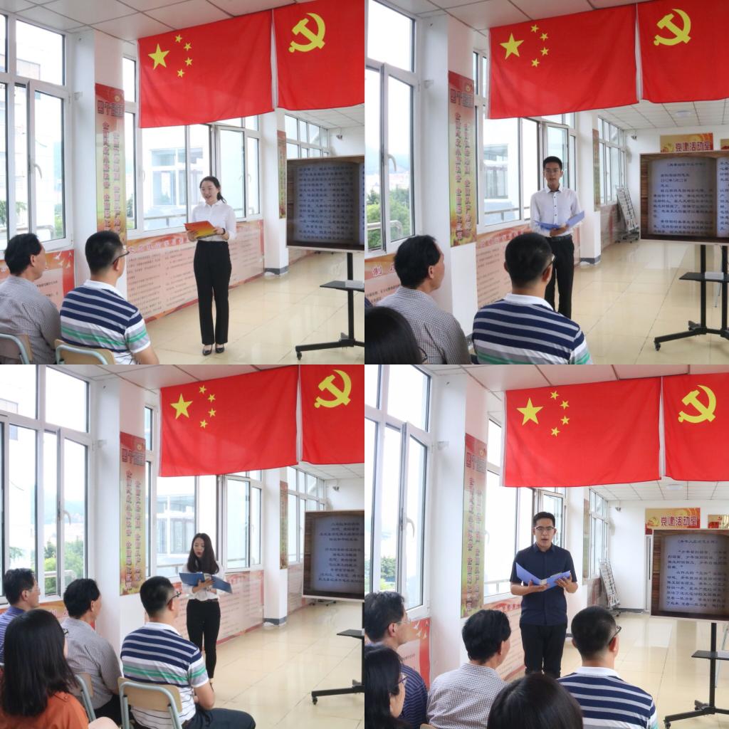 会上,党员分别诵读了《左权给刘志兰的信》《庆七一诗歌》《青年人应该怎么做》等文章,将无声的红色文字转化为有声的倾诉,生动的呈现在大家面前,现场气氛浓烈,感染了每一个人。随后,党员在党旗下庄严宣誓,重温入党誓词,全体党员在铿锵有力的声音中坚定着对马克思主义的信仰,把对党的忠诚融入到血液中。