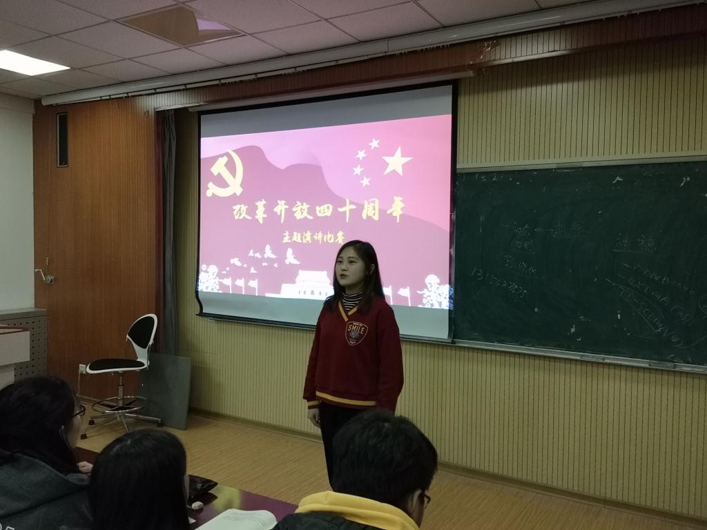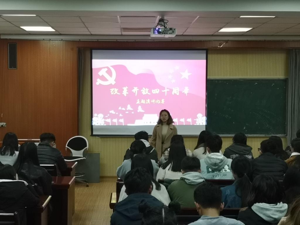 心念悠悠,传播改革时代最强音。学院面向全体学生征集“历史从这里转身 四十正青春”为主题的故事和照片,以我来讲你来听的形式引导学生感受生活之变、社会之变、时代之变。此外学生会组织大一新生开展演讲比赛,同学们动情的以“改革开放这四十年”为题,表达出对祖国的热爱和深情祝福。