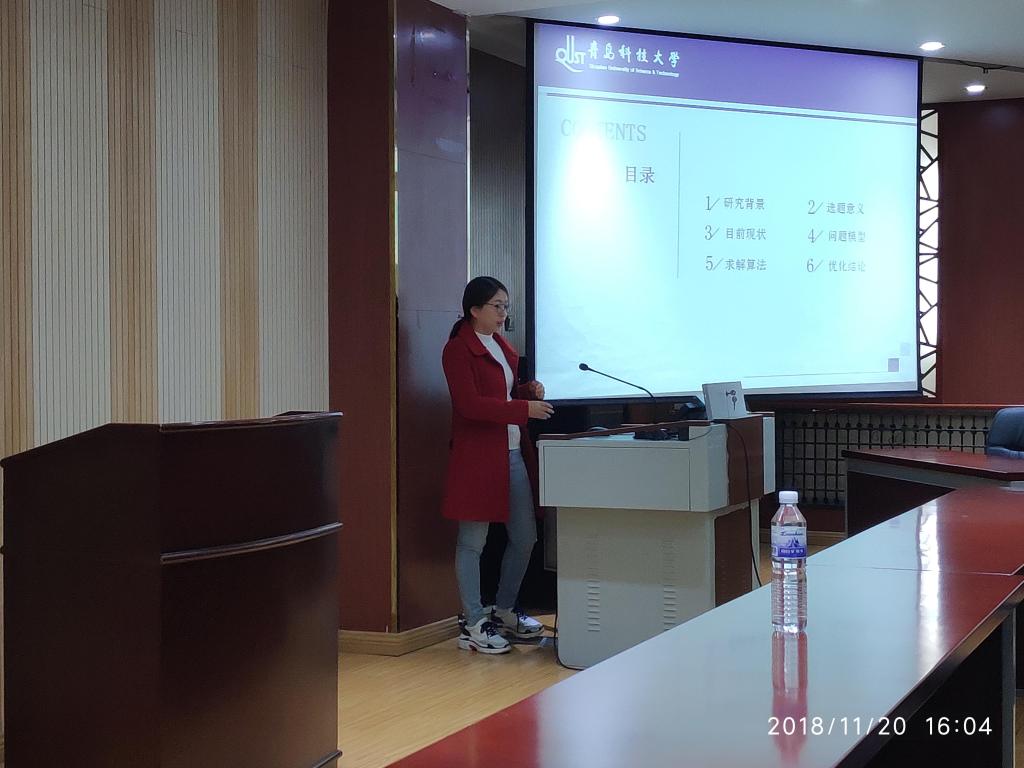 随后,我院物流管理系王艳婷博士分享了其目前的一篇研究论文《随机动态环境下项目进度计划与控制》。王博士从研究背景、选题意义、目前现状、问题模型、求解算法和优化结论六个方面具体阐述了研究主题。王博士认为采用前摄-反映的调度方式制定项目计划非常有必要,一方面可以监控项目计划实施的情况,另一方面又可以提高基准进度抗风险的能力,提高资源运用效率。