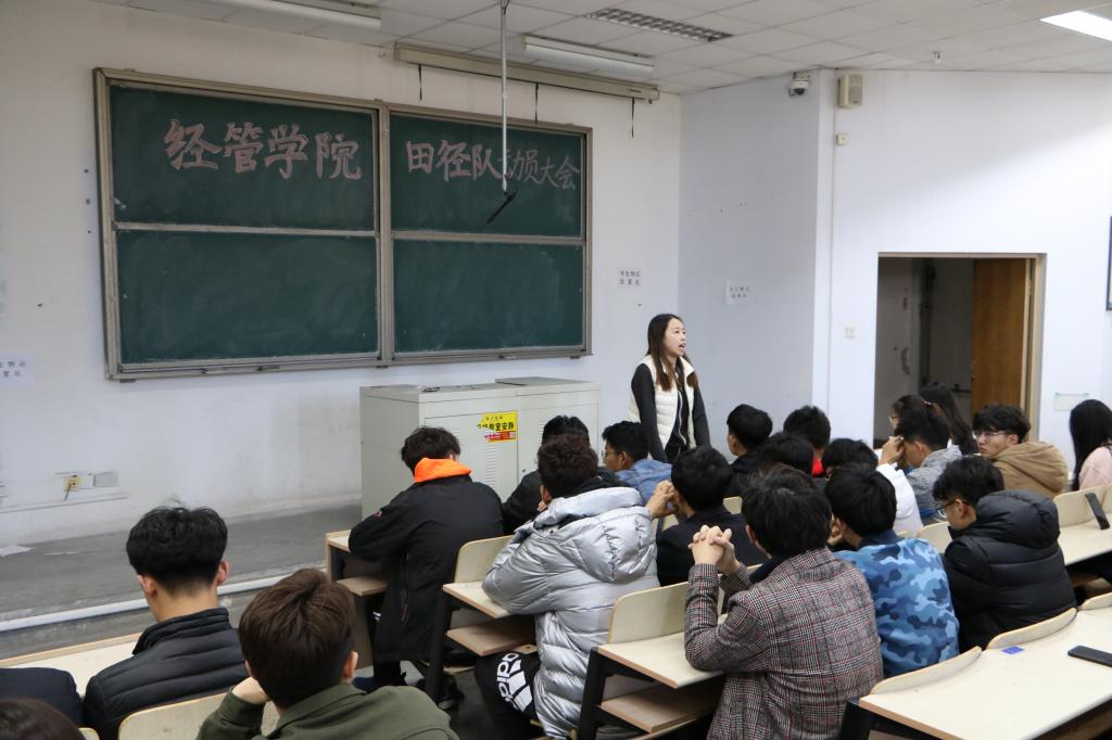 王聪老师指出在座的一半同学都是越野队的成员,在18年冬的校越野中,同学们踏实训练,在一个月的集训中成绩显著,取得了历年来最好成绩,今天大家再次聚在一起,为今年的校运动备战,信心满满。接下来的两个月学院为大家聘请了专业的教练组织集训,希望各位同学珍惜机会,全力训练,提高成绩,希望同学们收获持之以恒的做事韧劲,争先争优的良好习惯,并肩作战的人生朋友,在校运会赛场上赛出水平,赛出风采。王聪老师嘱咐同学们在训练中注意安全,做好热身活动。随后,张晓帆老师向运动员们提出树立集体荣誉感、为学院争光、在活动中实现自我进步的希望,她指出同学们要珍惜平台,并针对接下来的训练提出三点要求:一是端正态度,按时参训;二是高度配合,接受督导;三是锻炼身体,平衡学习。体育学院特约教练随后强调了训练着装、器物配备和训练计划等注意事项,希望和同学们并肩奋斗的这两个月可以为校运会蓄力。最后,体育部工作人员对接下来的训练安排、考勤、请假等做了安排。