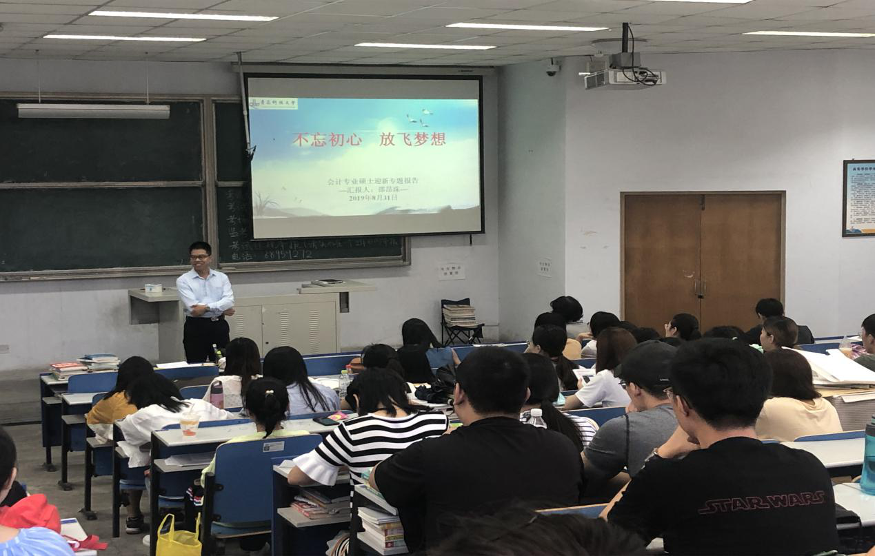良好的开端是成功的一半。为了帮助新生更合理地安排研究生生活,开启学习生涯新篇章,我院于8月31日上午9点特邀校外导师高级会计师邵昂珠老师为全体同学进行了“不忘初心 放飞梦想”入学教育主题讲座。邵老师首先肯定了会计的就业前景,并对会计师的人生分阶段进行了规划。随后,对CPA注册税务师证、证券从业资格证、ACCA等证书进行了详细的介绍。最后,邵老师按不同省份、不同工作岗位进行薪资对比对会计相关的职业发展进行了数据化分析,帮助学生更理智地了解行业发展水平,明确树立未来目标。此次入学教育讲座内容丰富,意义重大,为新生制定奋斗目标并合理安排三年研究生学习生活奠定了基础。