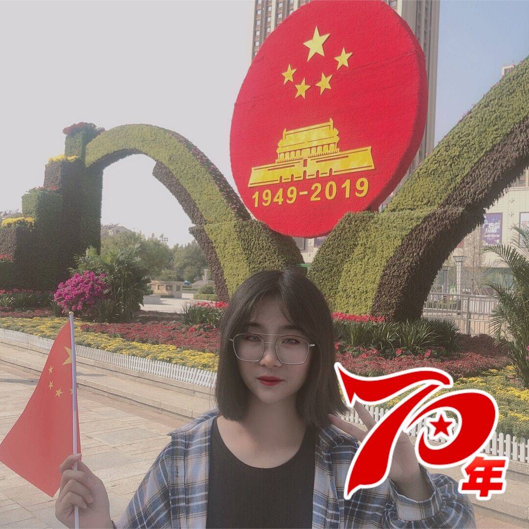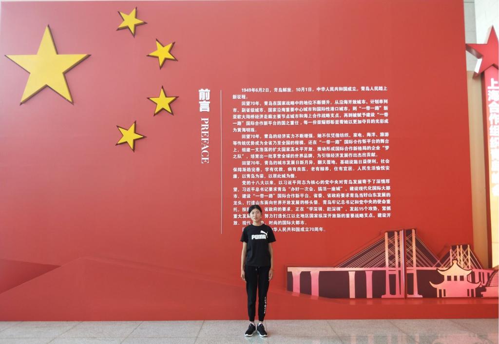 今天是祖国70华诞,我在“青岛70年成就展”当志愿者。虽然没有见证祖国70年完整的发展史,但在展会上,我深刻地体验到祖国由站起来到富起来再到强起来的全过程。我出生在2000年,是祖国母亲51岁那年,如今祖国母亲已经70岁了,祝福你,我亲爱的祖国,愿你繁荣昌盛,更上一层楼!