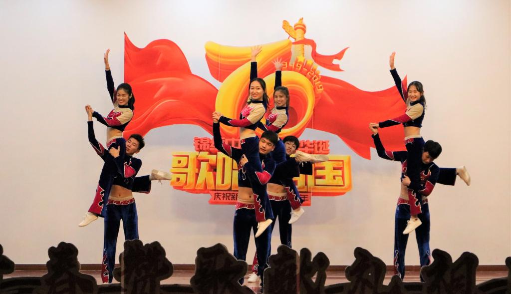 艺术团带来的舞蹈《‘经’舞飞扬新时代》中拉开帷幕。第一篇章“泱泱华夏,巍巍中华”,反映了新中国成立以来激情燃烧的岁月;第二篇章“改革开放,砥砺奋进”描绘出十一届三中全会后,在改革开放的东风中,社会发展日新月异的壮阔画面;第三篇章“和谐万邦,时代逐梦”,展现了社会主义进入新时代,在党的领导下,人人都是奋斗者,个个都是追梦人的时代精神。