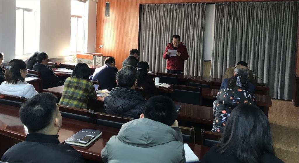 党总支书记李德成、院长王志宪、副院长董华、副院长杨友才、党总支副书记兼副院长刘跃宁及全体教职工参会,会议由李德成主持。