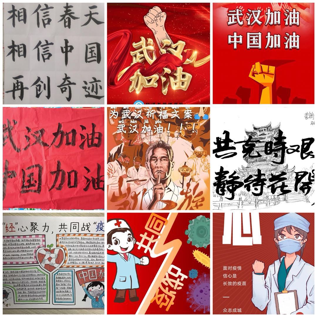 开展“‘经’心聚力,共同战‘疫’”作品征集活动以来,经管学子积极响应并参与投稿,截止目前,学院共收到涵盖书法、绘画、视频、海报设计、手抄报创作等艺术形式的艺术作品128件。其中,财务192班宋首霖的楷体书法,书写苍劲有力,内容激扬斗志,以方正之势彰显了“翰墨传祝福,同心战疫情”的决心;国贸192班张书榕在海报中绘出了共援武汉的希望之手,以海报的形式表达了中国人民万众一心、共克疫情的坚定信念;国贸171班王熙媛将医护人员和新型冠状病毒绘以卡通人物形象,以手抄报的形式在普及防疫知识的同时,表达了中国人民战胜疫情的决心。