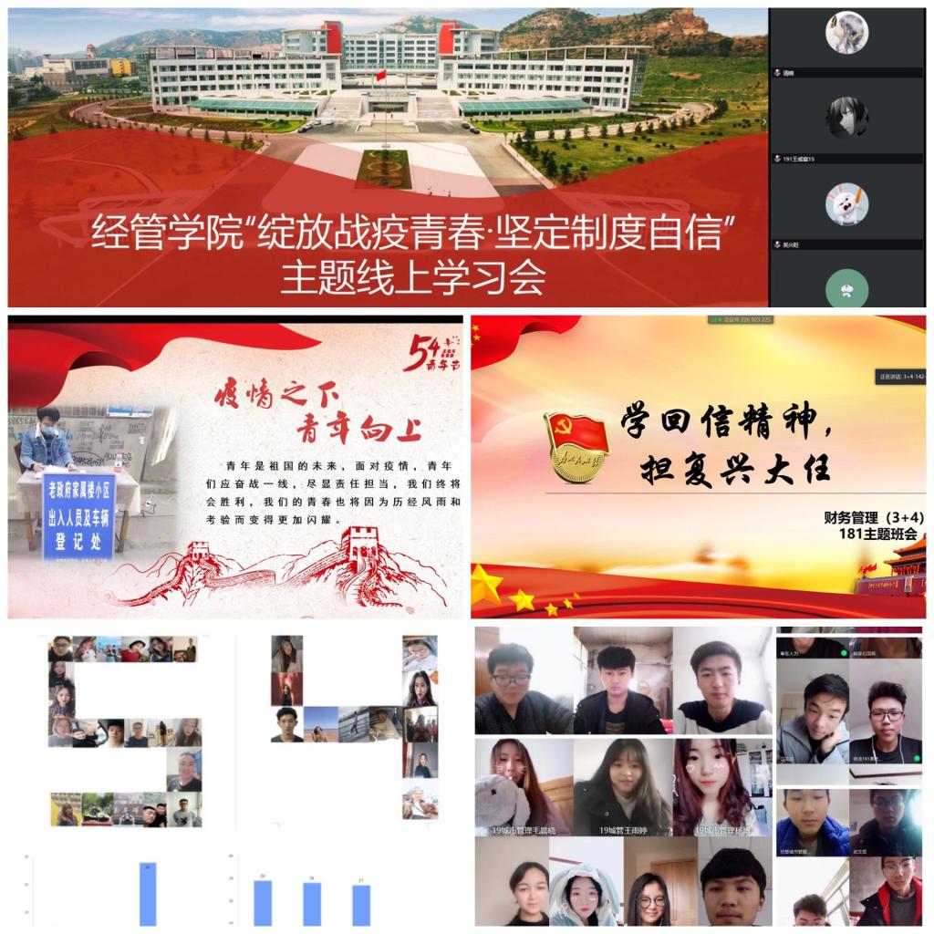 学院各团支部积极响应团中央和校团委号召,从“新时代”“新青年”“新使命”“新征程”四个专题出发,在“五一”期间“云集合”,通过“云团日”“云团课”“云竞赛”等活动,党团联动,带领青年“云过节”,呼吁青年用行动传承“五四”精神,厚植爱国主义情怀,通过手写信的方式积极分享学习感悟。财务管理(ACCA)191班团支部书记王荔荣在“绽放战疫青春,争做时代青年”团支部主题宣传教育活动中发言表示:“从历史走向未来,总有一种信心和力量激励我们奋勇前行——五四精神历久弥新,青春中国风华正茂。在建成社会主义现代化强国、实现中华民族伟大复兴的接力跑中,青年一代勇担重任、砥砺自强,一定能跑出更好的成绩,在新时代绽放青春的光芒!”