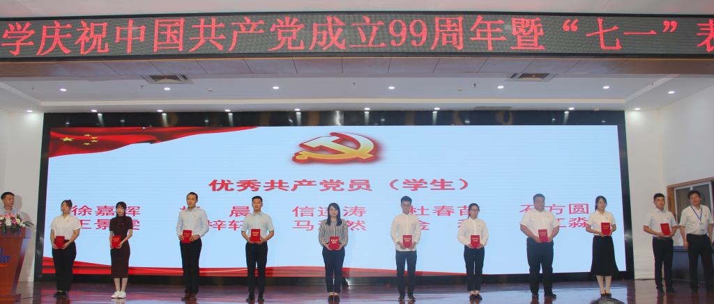 庆祝中国共产党成立99周年暨“七一”表彰大会于崂山区第二报告厅隆重召开。校领导,院级党组织书记、副书记,分团委书记,党支部书记代表,党员代表,学生入党积极分子代表参与会议。