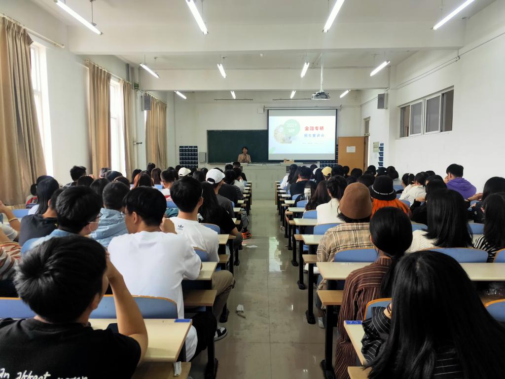 会上,吕承超副院长向学生们介绍了学校和学院的发展历程以及目前的发展规模,并概括讲解了金融专硕的专业设置、专业特色及学生们未来的发展前景,同学们反应热烈,对报考我校金融专硕产生了浓厚的兴趣。