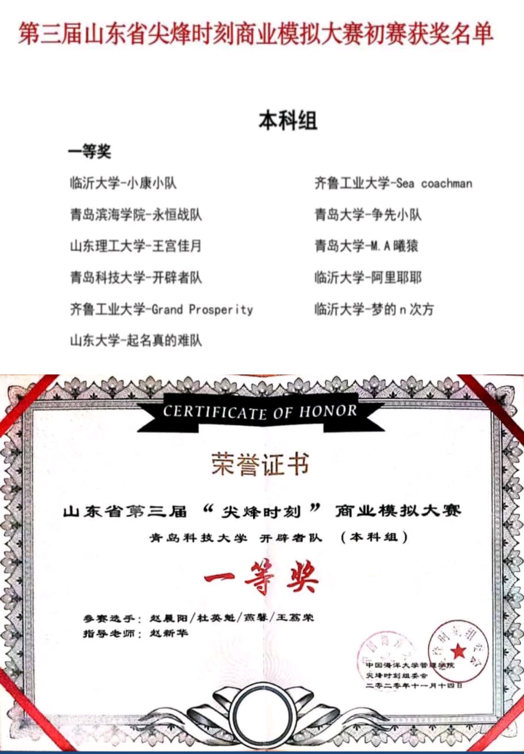 “开辟者队”在初赛中斩获本科组一等奖,成功晋级决赛,并取得优异成绩。