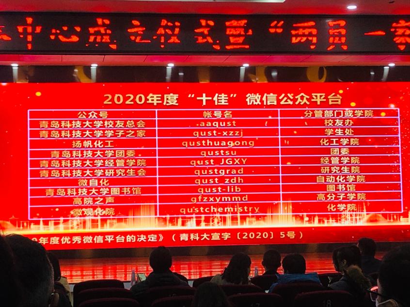 根据《关于表彰2020年度“十佳”微信公众平台的决定》(青科大宣字[2020]5号)的文件要求,本次评选依据文章总数、粉丝关注数、互动指数、阅读量、最大点击量、传播指数等综合数据展开评比。据悉,在本次微信公众平台表彰过程中涌现出一批优秀高质的微信平台,成人直播平台