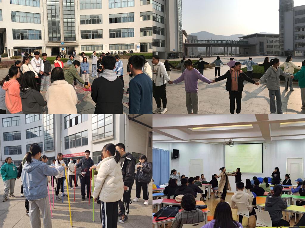 此次团辅以专业为单位开展,专门针对新生入学以来的适应性问题进行专题团辅活动,活动分为室内和户外两部分。其中,室内活动设置“雨点变奏曲”“大风吹”“滚雪球”“大学环游记”等4个环节,通过切合00后特点的游戏引领同学们跳出原有的“交际舒适圈”,变换团队组成,加强成员之间的熟悉度、配合度和向心力;户外活动设置“心有千千结”“鼓舞人心”“神笔马良”等3个环节,从陌生到熟悉,从羞涩胆怯到默契配合,同学们齐心协力完成了一个又一个的挑战,在欢声笑语的氛围中逐渐学会团结协作、积极沟通的作用。财务管理专业的肖洋同学感慨说道:“此次新生团体辅导拉近了我们彼此间的距离,减少了隔阂与陌生,增进了集体凝聚力和荣誉感,为未来大学四年的学习与生活注入了一份动力与温暖。”