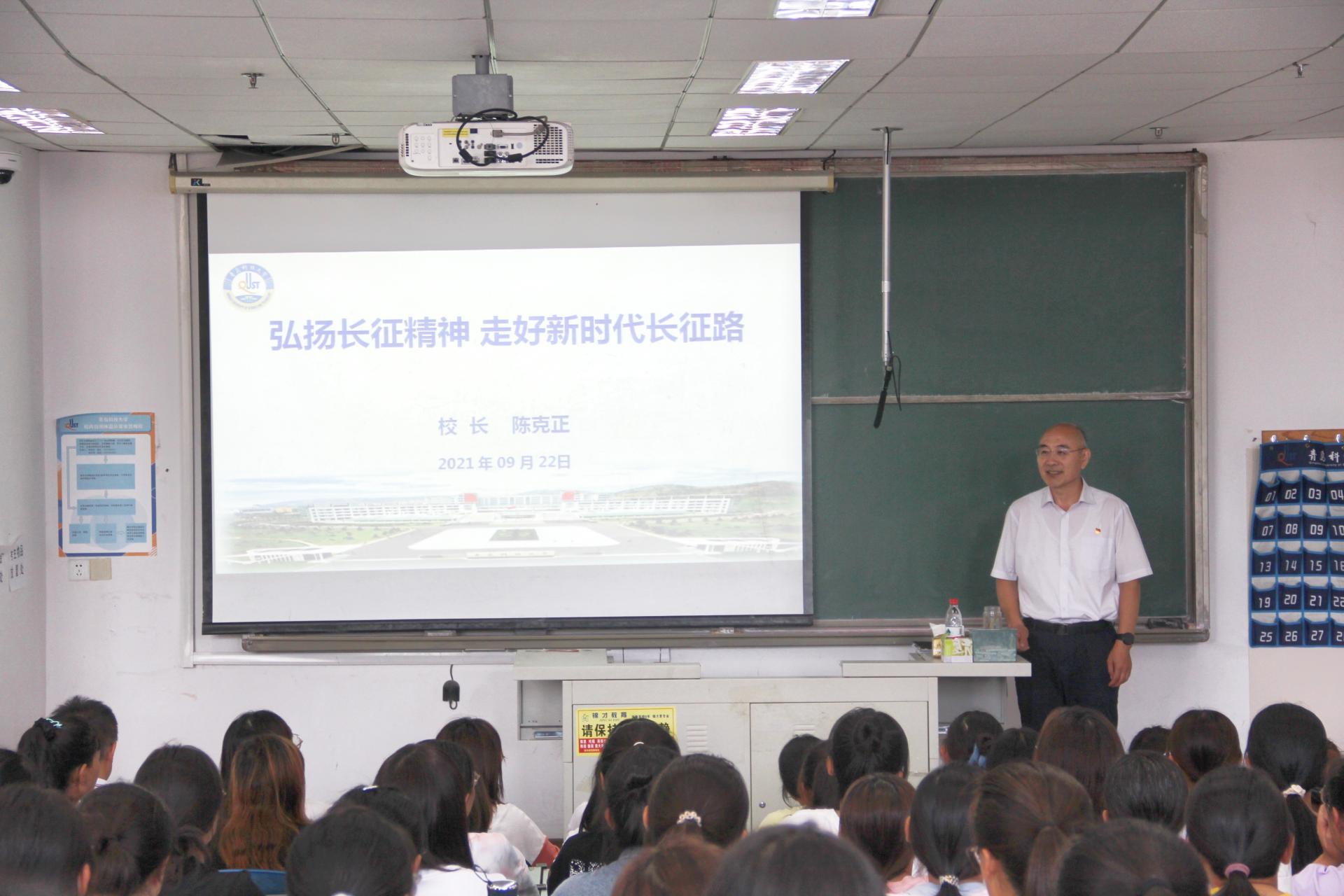 9月22日下午,校长陈克正走进学生课堂,以“弘扬长征精神 走好新时代长征路”为主题,为成人直播平台