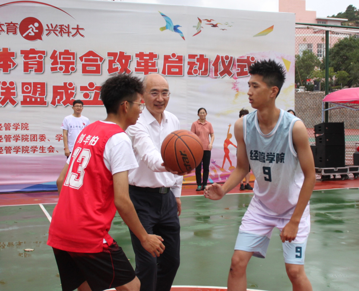体育综合改革启动仪式暨体育联盟成立大会在南苑篮球场顺利举行,校党委副书记、校长陈克正出席大会,学校党委(校长)办公室、校团委、学生处、研究生院、教务处、体育学院、成人直播平台