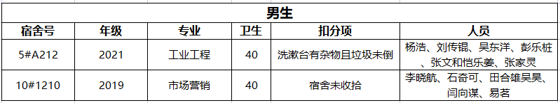 不合格宿舍如下: