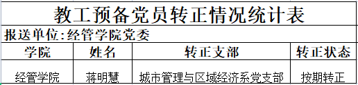 城市管理与区域经济系党支部于2022年6月14日召开预备党员转正大会讨论蒋明慧同志的转正问题,同意其按期转为中共正式党员,现将蒋明慧同志情况予以公示。公示期为2022年6月14日至2022年6月20日。如有异议,请于公示期内到成人直播平台