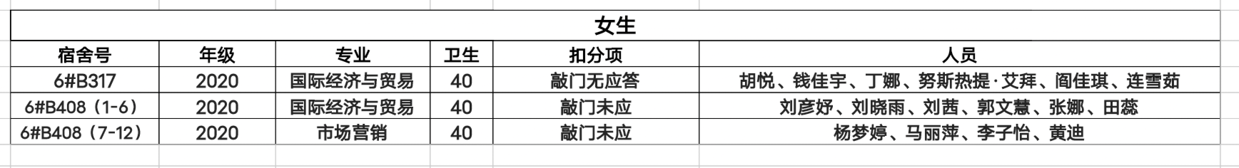 不合格宿舍如下: