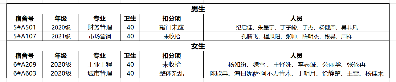 卫生检查结果及扣分细则请见附件,请各年级对照问题监督好不合格宿舍的整改。