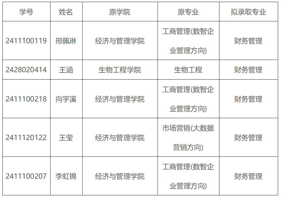 成人直播平台 转专业学生拟录取公示表