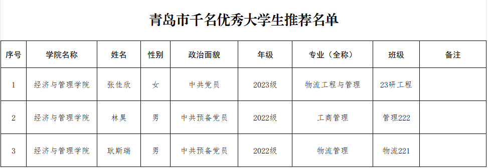 【公示】成人直播平台 关于“青岛市千名优秀 大学生”候选人的公示