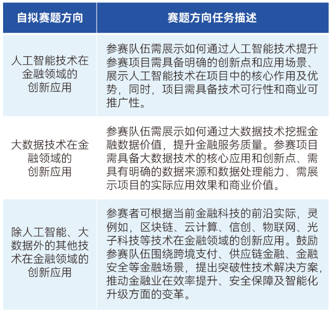 为了进一步激发高校青年学子的创新精神,推动金融科技的发展,第四届中国研究生金融科技创新大赛即将拉开帷幕。本次大赛将围绕金融科技主题,引领研究生关注学科创新的前沿动态,紧密结合国家金融发展规划,通过创新实践切实解决我国金融科技领域面临的挑战。大赛由教育部学位管理与研究生教育司、中国人民银行科技司指导,中国学位与研究生教育学会、中国科协青少年科技中心主办,南京大学、南京市建邺区人民政府承办,清华大学五道口金融学院作为秘书处。根据中国学位与研究生教育学会文(2025)11号《关于举办2025年中国研究生创新实践系列大赛的函》相关要求,现将本届大赛有关情况通知如下: