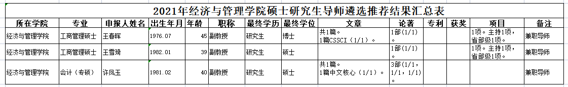 【公示】2021年成人直播平台 硕士生导师遴选结果公示