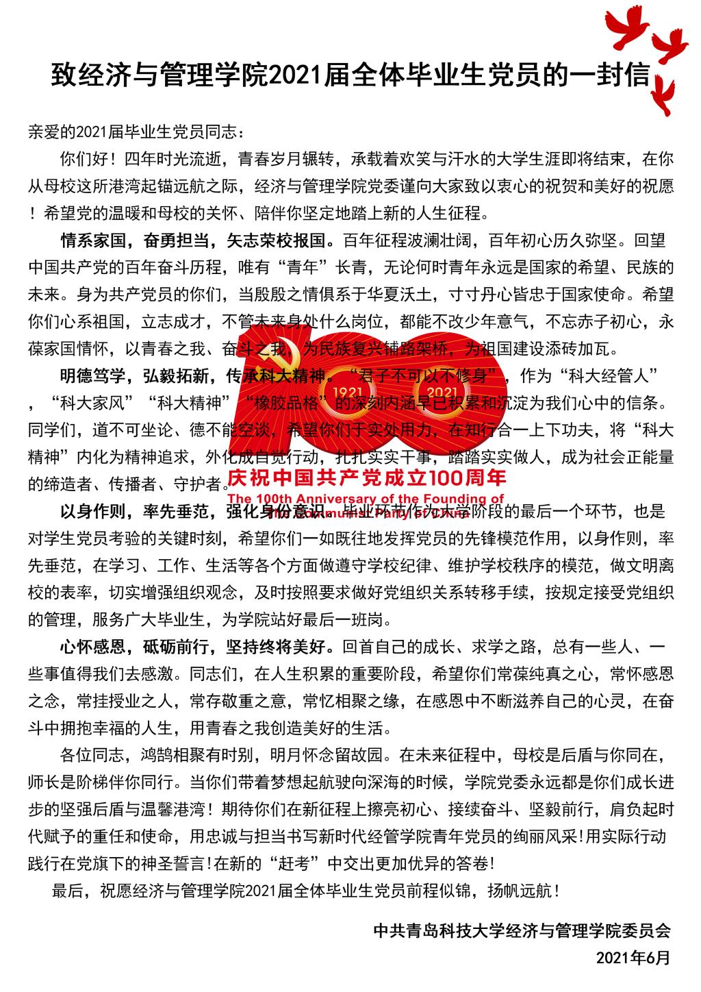 【毕业嘉年华】致成人直播平台 2021届全体毕业生党员的一封信