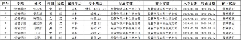 本科生党支部于2020年9月17日召开预备党员转正大会讨论许心如等7位同志的转正问题,同意以上同志按期转为中共正式党员,现将该7名同志情况予以公示。公示期为2020年9月17日至2020年9月23日。如有异议,请于公示期内到成人直播平台