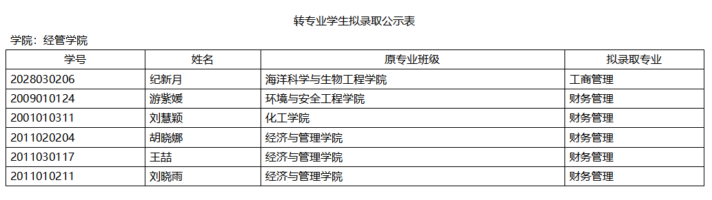 【公示】成人直播平台 2021年转专业学生拟录取公示