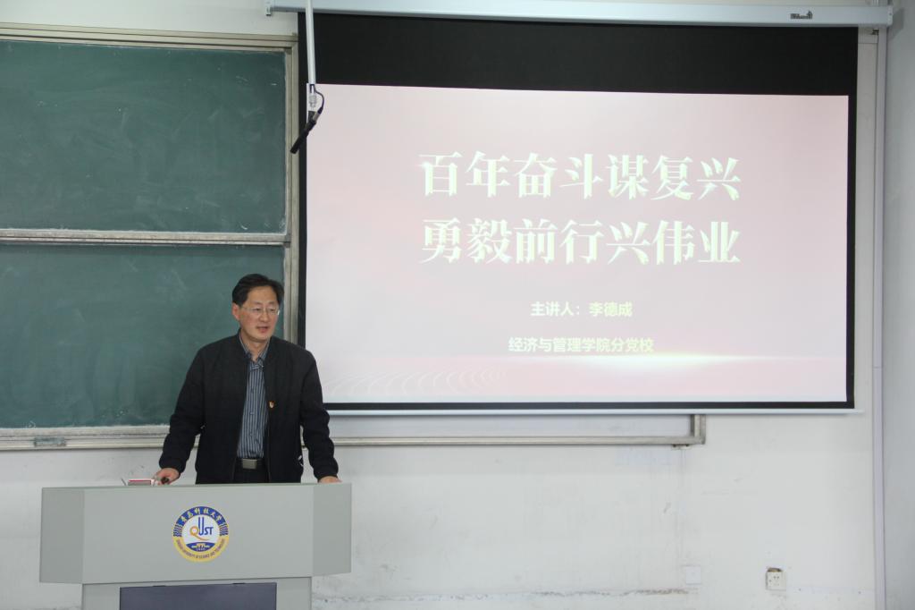 在“百年奋斗谋复兴 勇毅前行兴伟业”专题党课讲授中,李德成以中国共产党百年历史为脉络,围绕党史中的重要历史时期和伟大壮举,引经据典地向同学们深入浅出地阐释了党带领广大人民群众从开天辟地到改天换地,从翻天覆地到惊天动地的伟大历程,最后,回归思考领悟党的性质与宗旨所蕴含的真正内涵。他强调,民族复兴大业已经站在新的历史起点、踏上新的伟大征程,新时代中国青年迎来了实现抱负、施展才华的难得机遇,更肩负着建设社会主义现代化强国、实现中华民族伟大复兴中国梦的时代重任,青年学子要学会在波澜壮阔的党史画卷中源源不断地汲取中国共产党人们伟大的智慧成果。