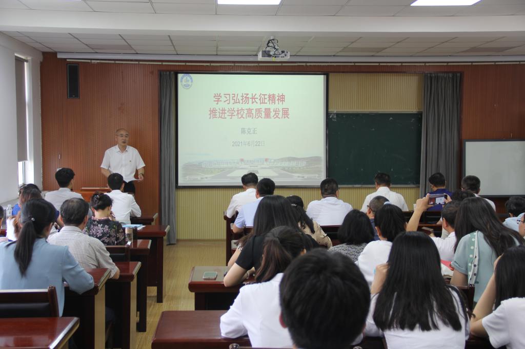 6月22日下午,校长陈克正以“学习弘扬长征精神 推进学校高质量发展”为题,为成人直播平台