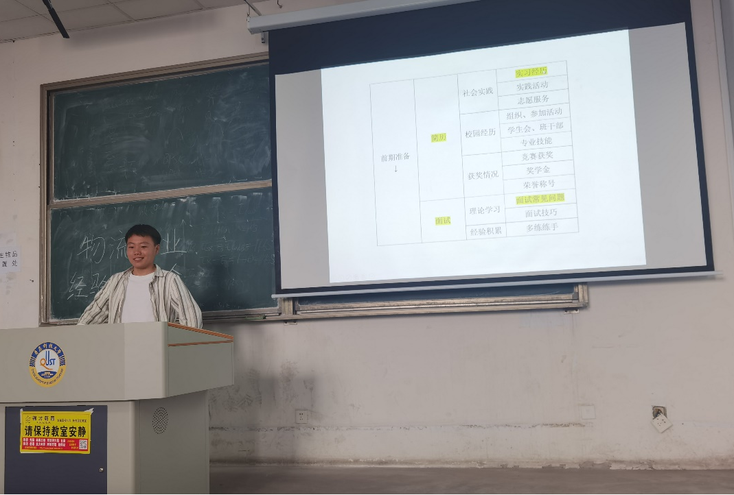 会议伊始,索琪首先介绍了近年来物流管理专业学生培养情况,并重点围绕学生较为关注的专业赛事、考研就业情况进行了详细讲解,同时结合专业特色及社会需求对学生良好的就业前景进行了展望。