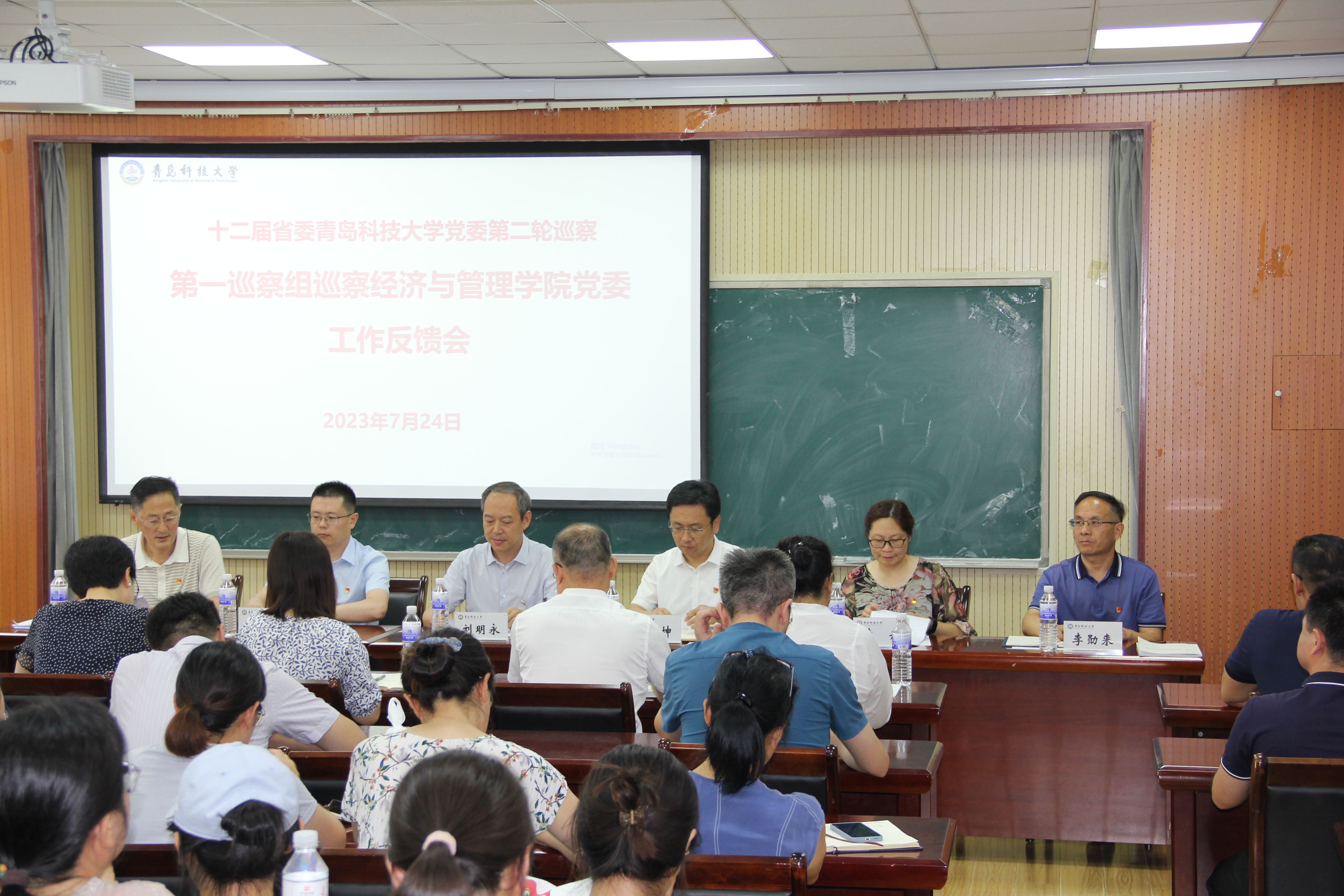 监察专员刘明永,党委常委、宣传部部长张洪坤,党委常委、组织部部长朱敬义出席会议,第一巡察组副组长李卉反馈巡察情况,学院党委书记李德成主持会议并就做好巡察整改工作作表态发言。