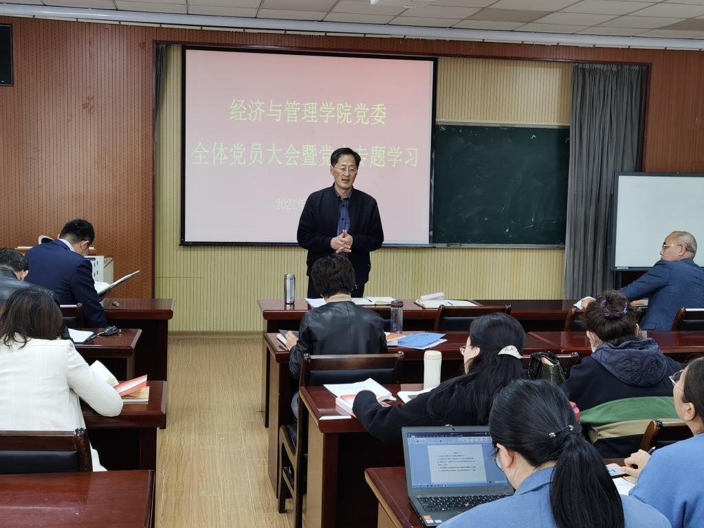 党委组织召开全体党员大会暨党史专题学习会,学院党委书记李德成主持会议,全体党员参加学习。