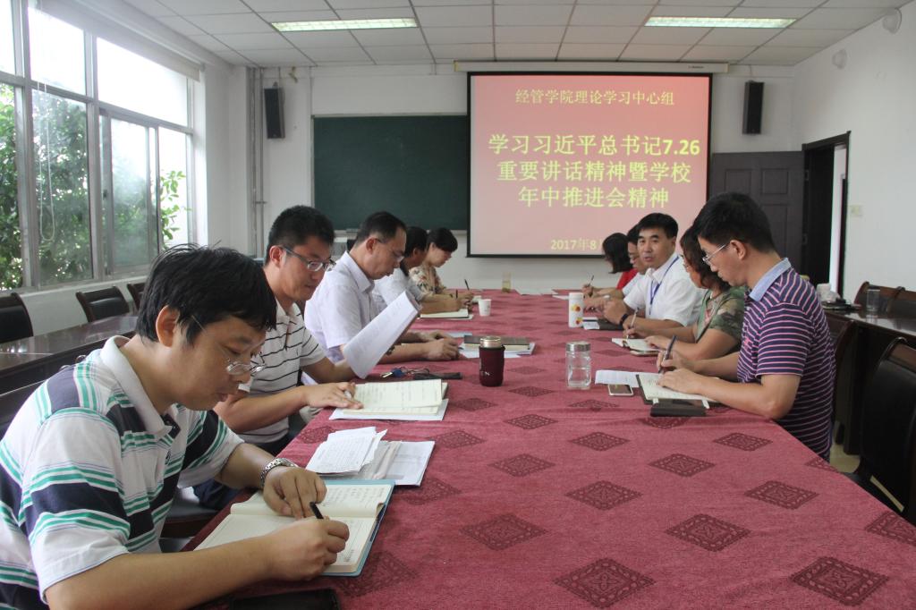 召开理论学习中心组专题会议,集中学习习近平总书记7月26日在省部级主要领导干部专题研讨班上重要讲话精神暨学校年中推进会精神。党总支书记聂法良主持会议。