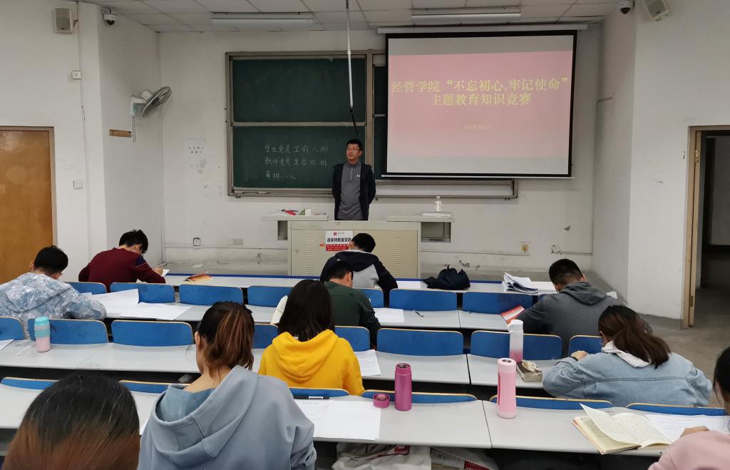 学生党支部于10月20日在弘毅楼E203教室举行了学生党员“不忘初心、牢记使命”主题教育知识竞赛,全体辅导员以及学生党员共57人参加了本次知识竞赛。