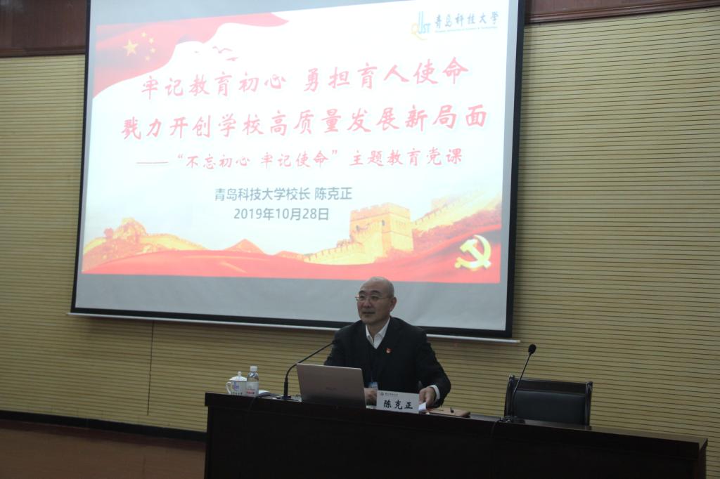 10月28日下午4点,根据学校党委“不忘初心、牢记使命”主题教育实施方案,校长陈克正主讲的“‘牢记教育初心 勇担育人使命’,戮力开创学校高质量发展新局面”主题党课在第一报告厅进行。发展规划处、科技处、人文社科处、合作发展处、高密校区、成人直播平台