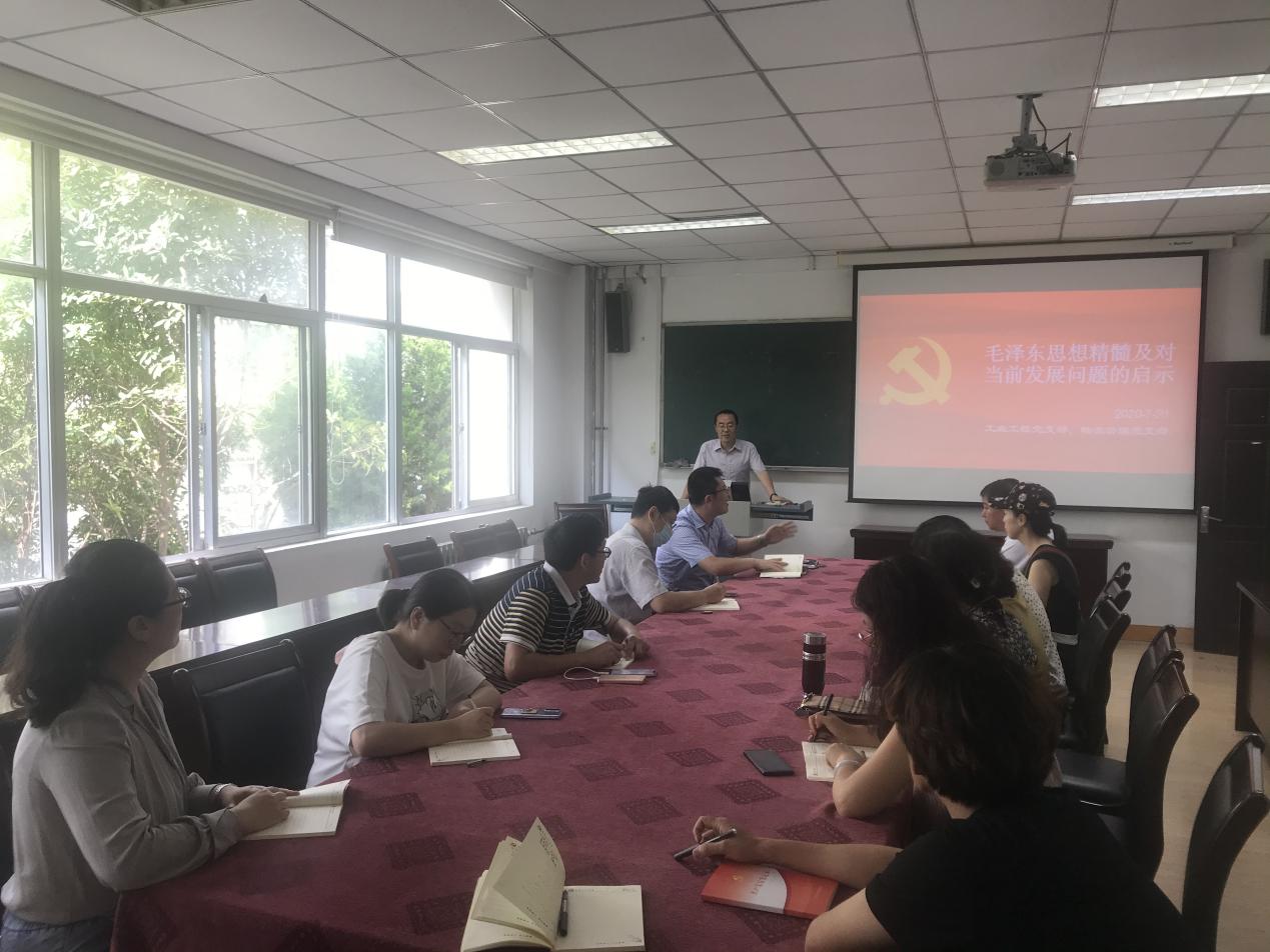 整个学习研讨活动主要围绕两个议题展开,一是由工业工程系主任于龙振老师给大家上一节党课《毛泽东思想精髓及对当前发展问题的启示》,二是围绕下一步专业工作的紧迫问题即专业招生开展全体党员大讨论。