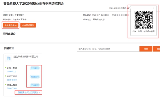 2020届毕业生春季网络招聘会”(//job.crzbplatform.com/largefairs/view/id/719/domain/qust)专区,或扫描网络招聘会二维码(见附件2)申请预定展位,发布招聘信息,学校将根据企业规模性质、与学校专业匹配度等择优审核,与学校建立合作关系、长期到校招聘的企业优先。学校审核通过后,企业招聘信息即可在本次招聘会网络平台显示。本次招聘会将同步生成企业微信二维码,以方便在微信端操作。特别提醒的是因网络招聘,请企业按平台提示要求,完整清楚的填写企业简介及招聘岗位信息,以免造成信息失真。