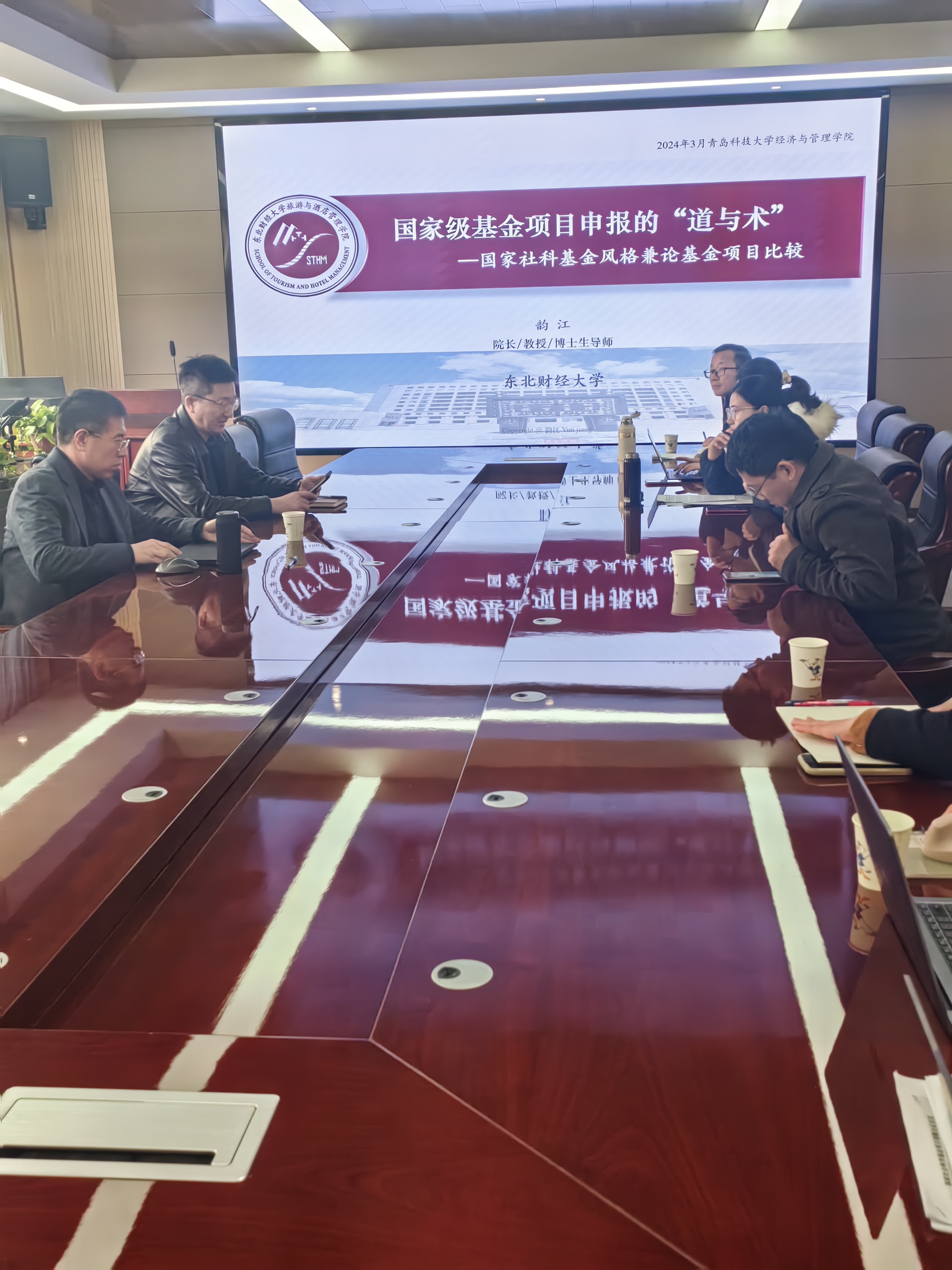 院长吕承超教授主持,东北财经学教授、博士生导师韵江教授主讲。本次论坛的主题为:国家级课题申请经验分享。