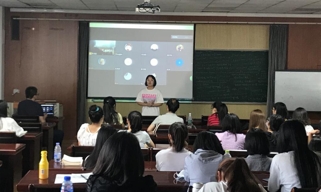 第一个进行交流的是被中国人民大学录取的夏淼同学,她就其考博时间线和个人简历的准备等问题表达了自己的看法。她叮嘱同学们,在选择学校时,要详细阅读报考简章,确保自己符合条件。其次,要认真完成自己的个人简历,包括绩点、外语水平、获奖情况等基本信息和研究方向、成果、工具、方法的等研究内容。最后,以她自己报考的专业为例,对笔试、面试环节的复习准备和考试过程进行了详细地讲解,并鼓励同学们相信自己,努力进入自己理想的学府深造。
